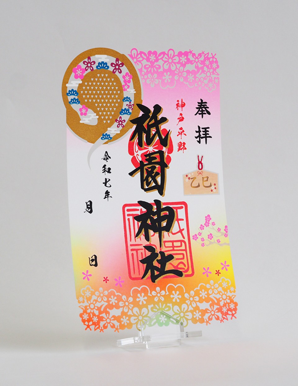 2025/03/12 祇園神社様/干支切り絵御朱印 祇園神社 兵庫 神戸 御朱印 限定御朱印 御朱印界隈 実例 製作 制作 メタリックプリント レーザーカット kome-kami ゴールド ピンク SDGs フードロスペーパー 再生紙 プレミア オリジナル GOSHUIN red ink stamp 初めてでも安心