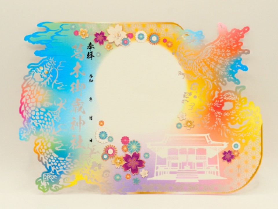 こだわりのプレミアム御朱印【カラフルVer.】 奈良・御所の葛木御歳神社(かつらぎみとし・じんじゃ)様にて、SPECUEのプレミアム御朱印【カラフルVer.】が採用されました。特別な技術を加えることで、新たな表現を生み出しました。 伝統の重みを大切にしながらも、細部にこだわり、より印象深い一枚に仕上げています。 (中央の空いている部分に御朱印を押していただけるようになっています)