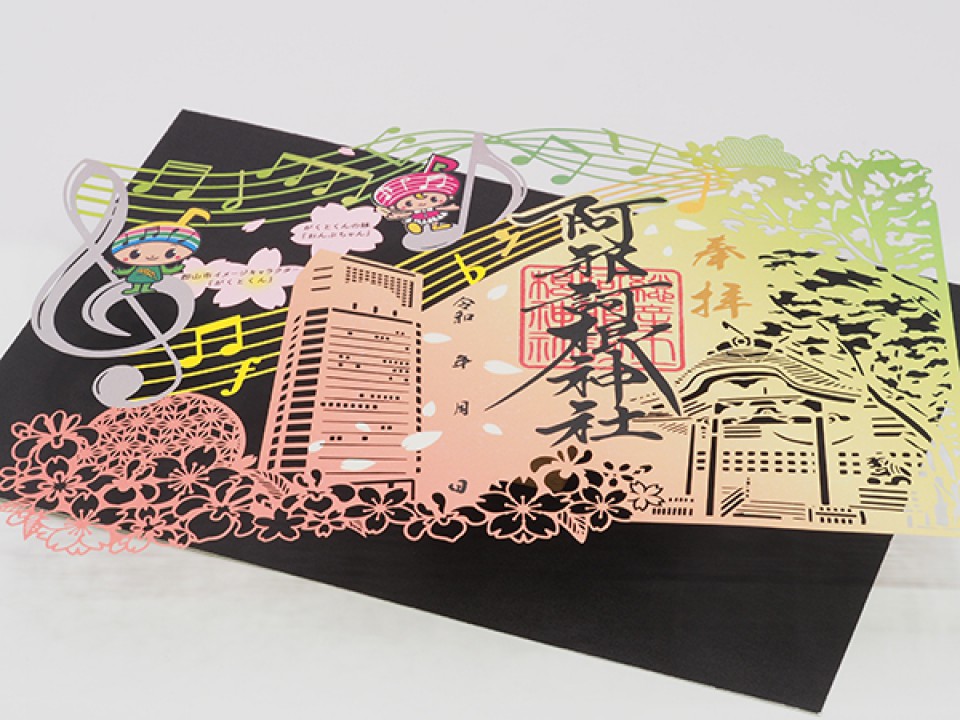 2025/04/11 阿邪訶根神社様/切り絵御朱印 阿邪訶根神社 福島 郡山 ふくしまディスティネーションキャンペーン ふくしまDC JR こおりやま御朱印めぐり がくとくん おんぷちゃん 御朱印 限定御朱印 御朱印界隈 実例 製作 制作 メタリックプリント レーザーカット ハーフカット ゴールド ピンク SDGs kome-kami フードロスペーパー 再生紙 プレミア オリジナル GOSHUIN red ink stamp 季節や記念イベント