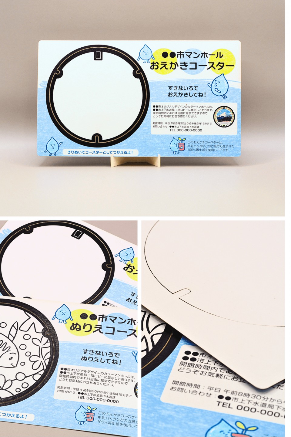 「マンホールコースター」は、夏祭りや上下水道イベント、啓発活動の配布物として、多くの自治体様にご活用いただいています。