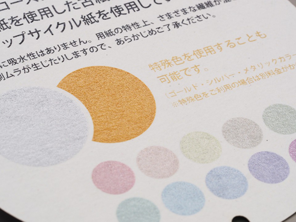 環境に配慮した素材と仕上がり 使用した紙は、牛乳パックなどの古紙を再利用した古紙配合率100%の「DKホワイトF」。 アップサイクル素材でありながら、十分な厚みと再生紙特有の風合いを兼ね備えており、コースターとしての機能性にも優れています。 印刷は片面フルカラー。レーザーカットにより、丸型の形状でマンホールデザインを精緻に再現しています。