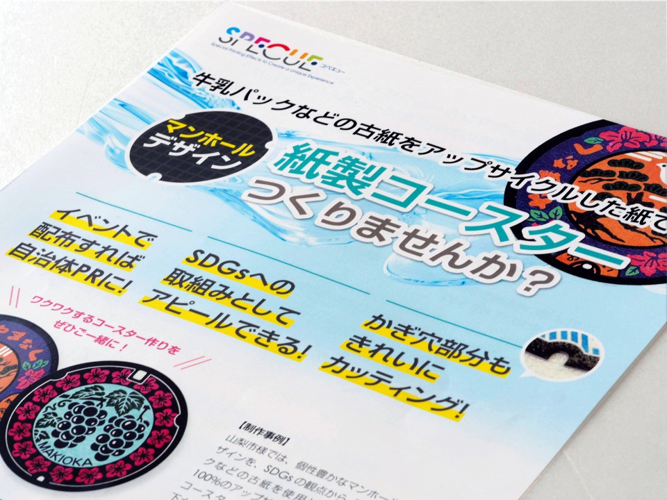 イベントでの配布物として、地域性とメッセージ性を持ったグッズをお求めだったこともあり、マンホール蓋のデザインを活かした紙製コースターというアイデアを採用いただきました。