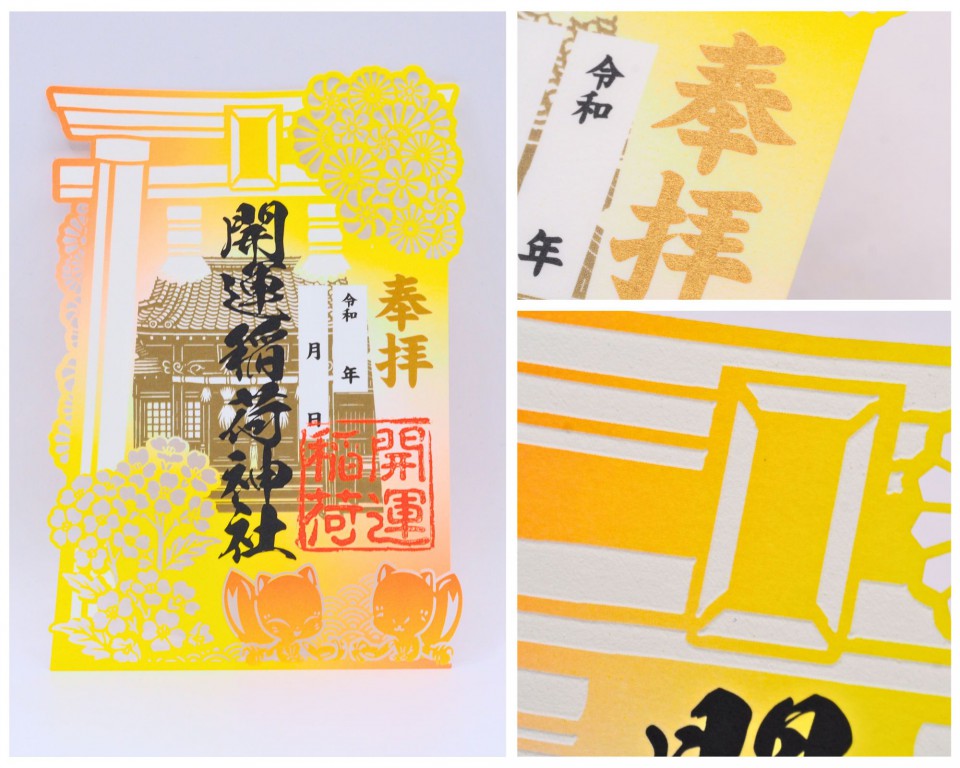 グラデーションがつくる温度感 開運稲荷神社の御朱印は、黄色から橙へと変化するグラデーションが印象的です。 特色トナーを用いて段階的に重ねることで、光の濃淡や柔らかさを再現。単色では表せない奥行きのある色彩表現を実現しました。 こちらもご覧ください ▶特殊印刷加工設備 Equipment | メタリックプリンター~Iridesseイリデッセによる魅力あふれる印刷体験