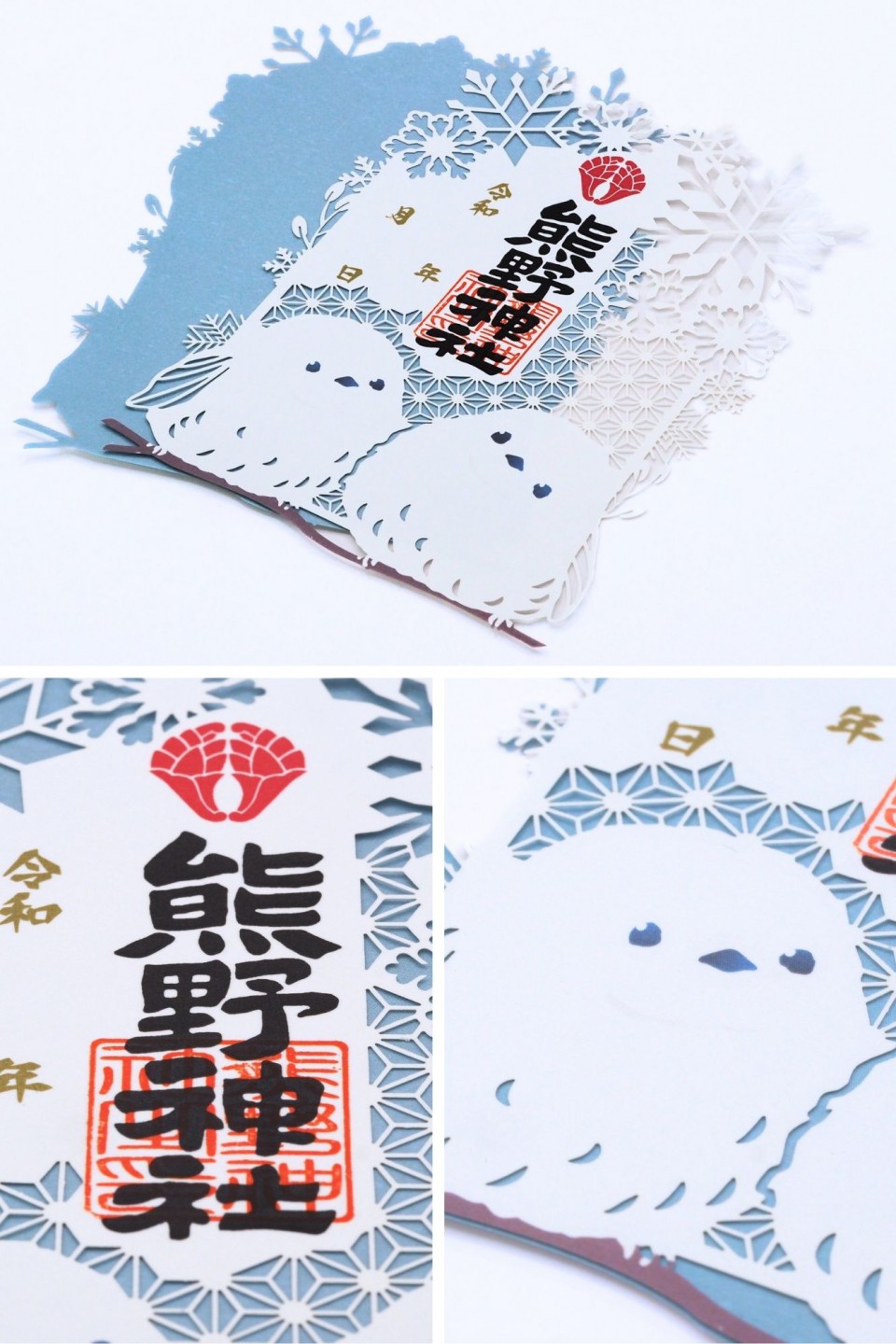 大牟田熊野神社様の冬限定切り絵御朱印「シマエナガ」を、SPECUEにて一貫製作いたしました。 鎮座地「鳥塚」にちなむ“幸せを運ぶ鳥”シマエナガと、雪の結晶を組み合わせたデザインを、切り絵の構造を活かした紙加工で立体的に表現しています。本体に加え、同形状で淡い水色をプリントした台紙を組み合わせる二層構成で、冬景の透明感を引き出しています。 ☞大牟田熊野神社X ☞大牟田熊野神社Instagram