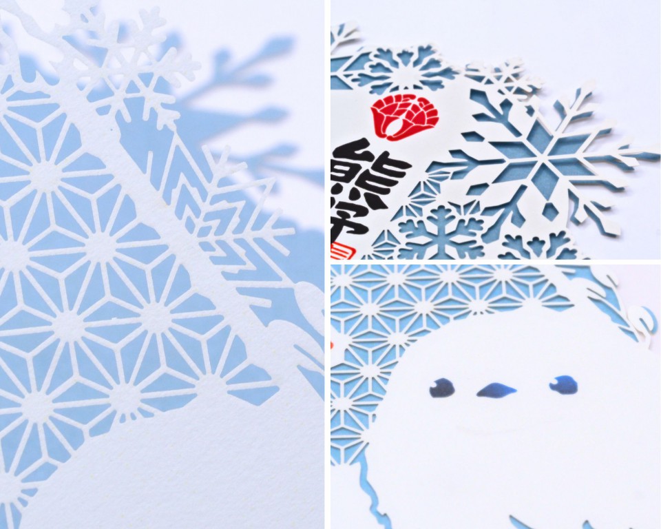 目次 紙の白さを生かす最小限プリントと、冬景を支える淡い水色台紙 雪の結晶とシマエナガを精密に描く、繊細カットとハーフカットの調整 冬の空気感と相性のよい “kome-kami 浮世絵ホワイト” の質感 仕様/設備