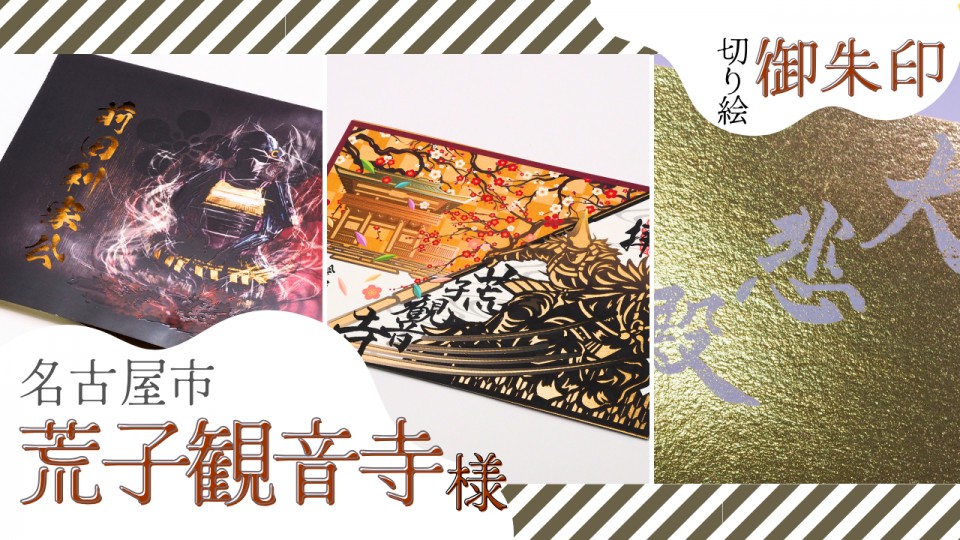 網戸神社様の切り絵御朱印の制作事例をご紹介します。kome-kamiを用い、フルカラー+ゴールド・ピンクの特色トナー印刷と背景紋様のレーザーカットを組み合わせました。