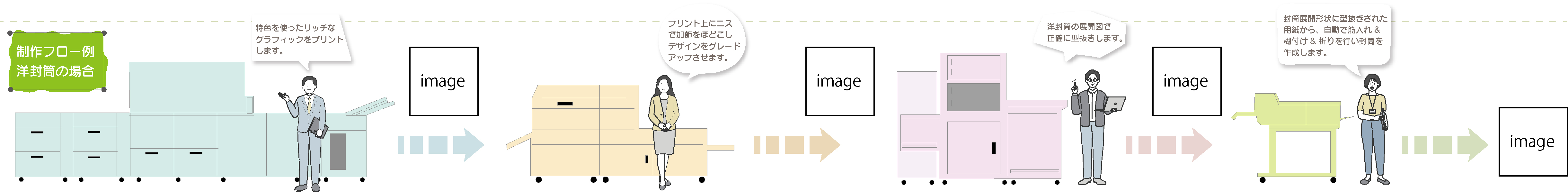 洋封筒を「作品」に変える、製袋の力 まず目指したのは、最初に触れる封筒から“特別感”をつくること。 既製封筒ではなく、デザインに合わせて一から製袋。表紙デザインをプリント・カットした用紙を、製袋機で折り、糊付けまで行い、世界にひとつの洋封筒として形にしていきます。 封筒のデザインやサイズ、フラップ形状や差し込みの角度まで設計できるからこそ、ブランドのイメージがそのまま立ち上がってくる。 “封筒そのものがプレゼント”と言えるような体験価値が生まれました。 SPECUEが封筒製袋までを担える体制だからこそ実現したアプローチです。 こちらもご覧ください ▶洋封筒製袋機~デザイナーのアイデアを形にする ▶社内一貫製造~社内一貫製造でさまざまな工程がスムーズに